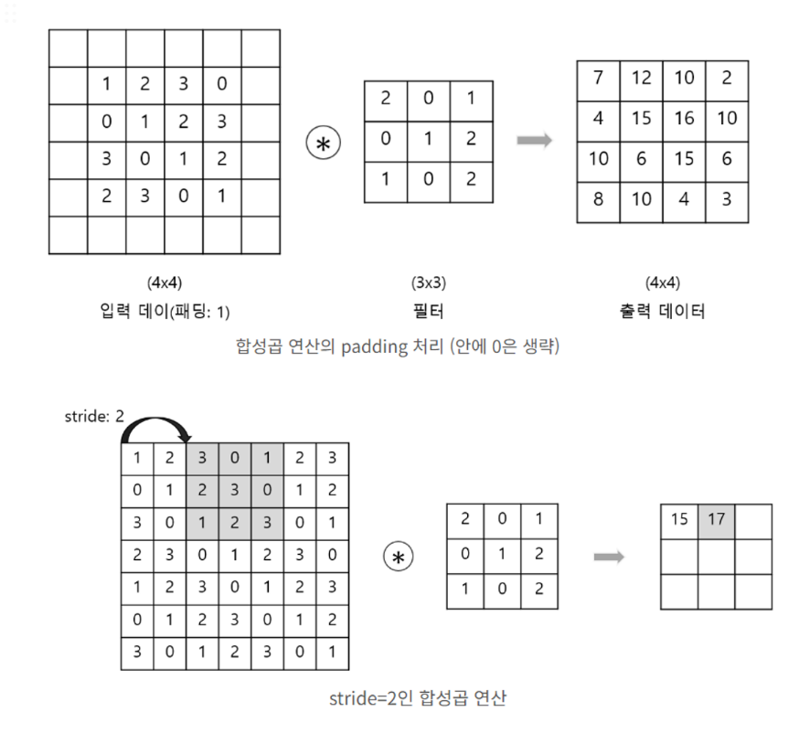 패딩: 컨볼루션 결과의 크기를 조정하기 위해 입력 배열의 둘레를 확장하고 0으로 채우는 연산